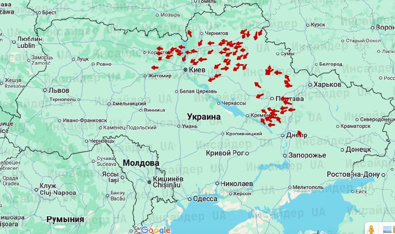 Згідно з онлайн-мапами повітряної обстановки, в небі перебуває приблизно 95 дронів-камікадзе типу «Шахед». Частина з них рухається в напрямку західних регіонів, оминаючи Київ, але маршрути решти залишаються поки не визначеними.