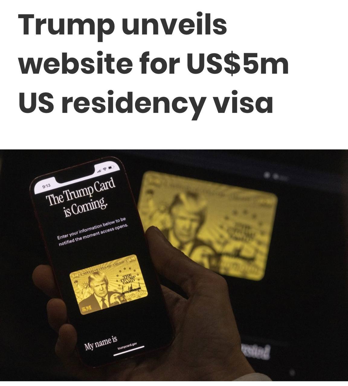 Президент США запустив сайт, де іноземці можуть залишити свої дані, щоб потрапити в чергу на «золоту карту».