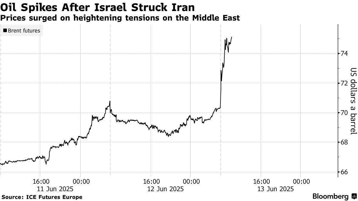 Ціни на нафту різко зросли, збільшившись майже на 9% після нічної атаки Ізраїлю на Іран.
