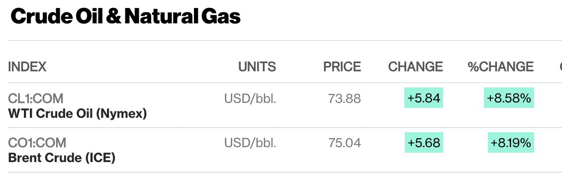 Згідно з графіками Bloomberg, вартість бареля марки Brent перевищила позначку 75 доларів.