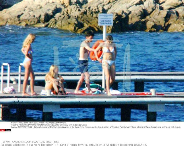 Встречаются друг с другом путинские девочки тоже явно не на родине. Известно, что они неоднократно гостили на вилле у Сильвио Берлускони, о чем недавно поведал он сам. На фото путинские дщери запечатлены с Барбарой Берлускони (крайняя слева). Бывают ли они в РФ? Сведений об этом нет, зато часто можно наткнуться на утверждения, что Маша с 2005 г. не проживает в России.
