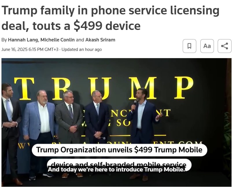 Сімейний бізнес Дональда Трампа ліцензував своє ім’я для запуску в США нового мобільного сервісу та смартфона під назвою Trump Mobile. Вартість пристрою складе 499 доларів.