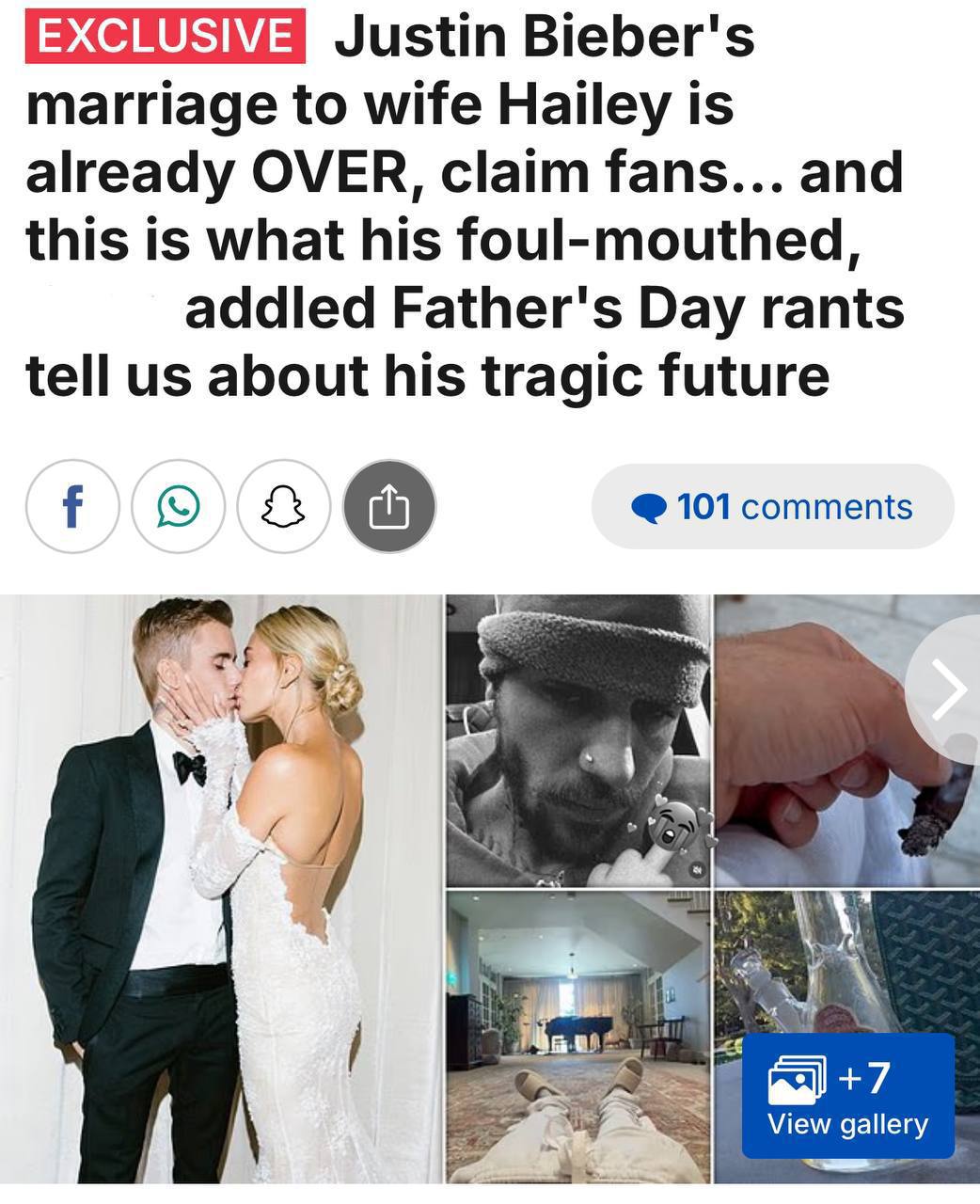Як аргумент вони згадують, що Гейлі не привітала Бібера з Днем Батька, але вона залишила жартівливий коментар під його публікацією, згадавши привітання чоловіка з Днем Матері.
