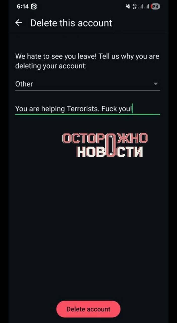 На іранському телебаченні вийшов сюжет про те, що ізраїльтяни здобувають інформацію за допомогою функції публічних каналів. Водночас в Telegram іранські автори стверджують, що йдеться про спеціальну передачу даних. Громадян закликають видаляти додаток хоча б на час конфлікту. У соцмережах користувачі публікують фото і відео того, як вони видаляють свої акаунти в месенджері.