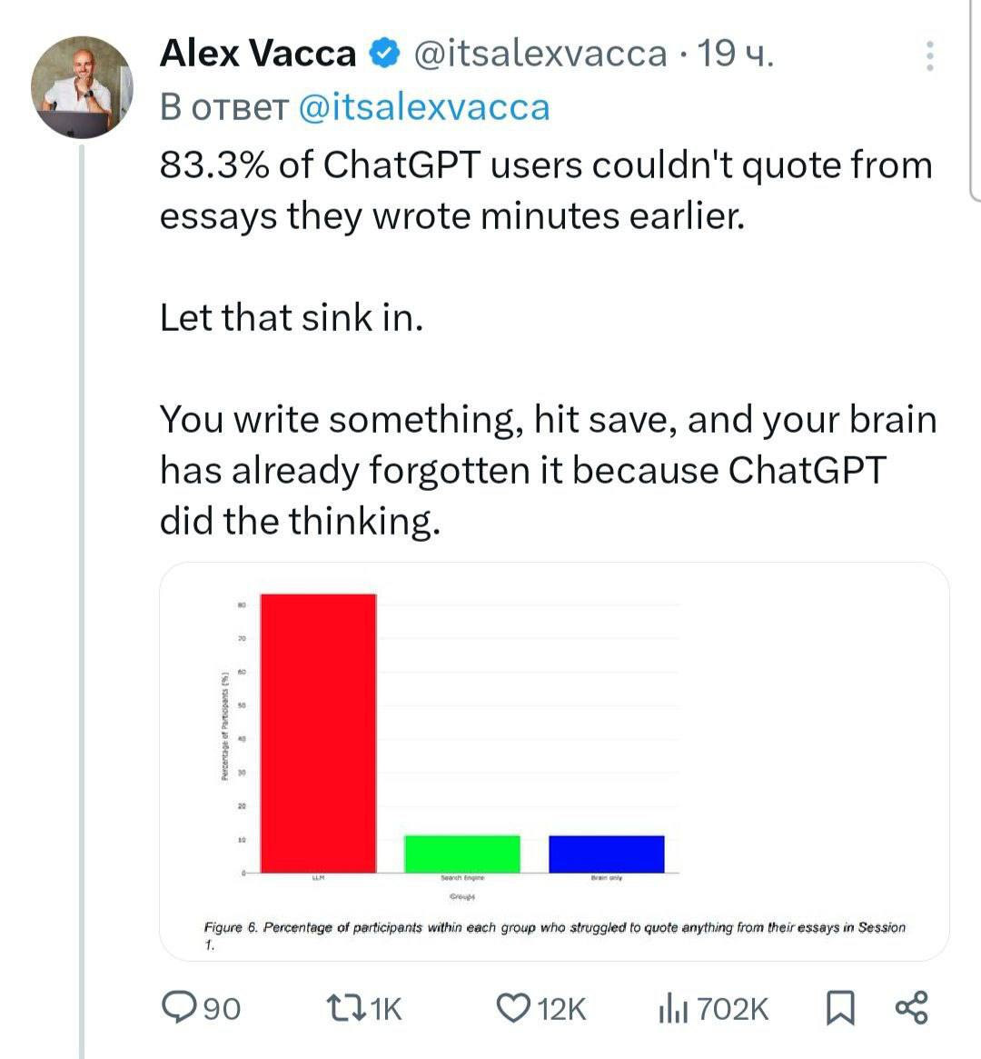 ChatGPT вбиває навички мислення і притуплює креативність, — вчені