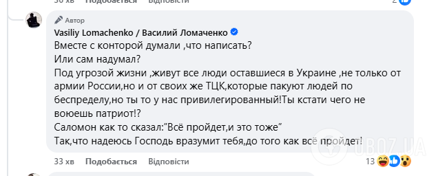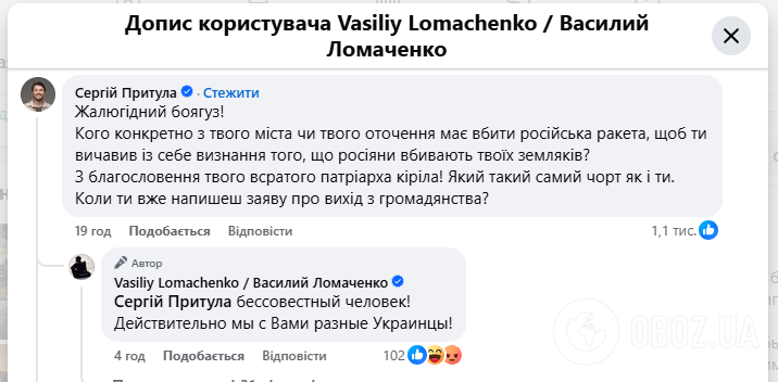 Відповідь від Ломаченка не змусила на себе чекати - він перейшов на особистості, назвавши опонента безсовісним і підкресливши, що вони "різні українці".
