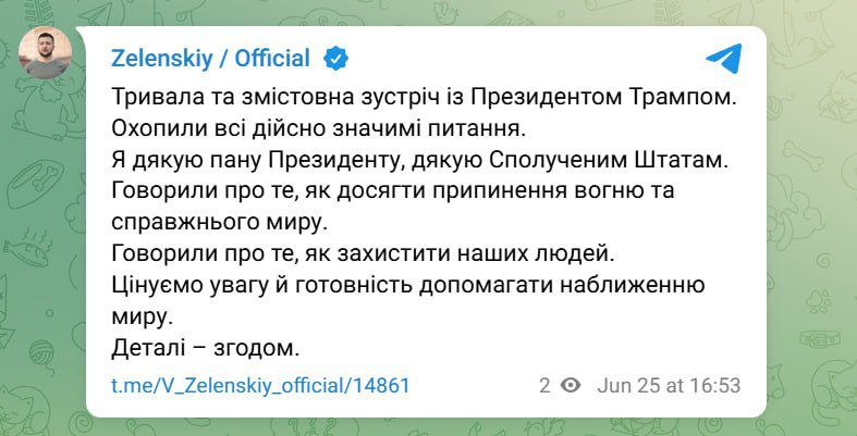 За словами Зеленського, розмова була тривалою та змістовною, під час якої обговорили всі ключові питання.