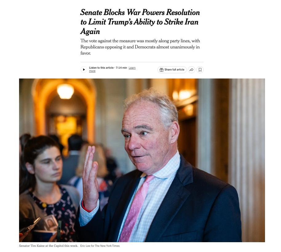 Цей закон обмежує можливість президента починати військові конфлікти без схвалення Конгресу. У разі ухвалення резолюції Білий дім повинен був би отримувати згоду обох палат перед будь-якими новими ударами, включаючи дії проти Ірану.