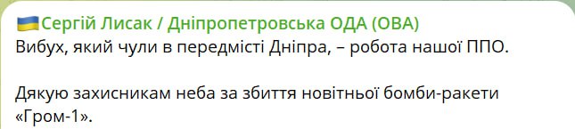 У Дніпрі збили новітню російську бомбу-ракету "Гром-1" — ОВА