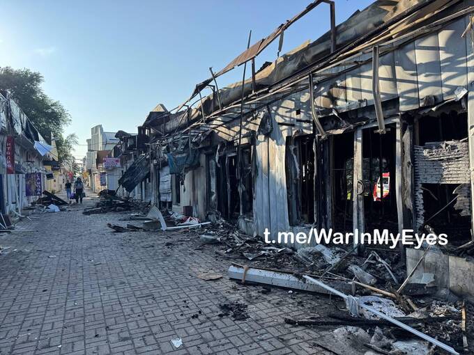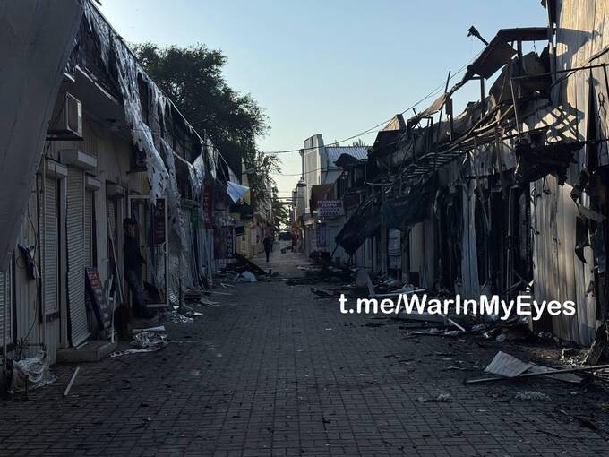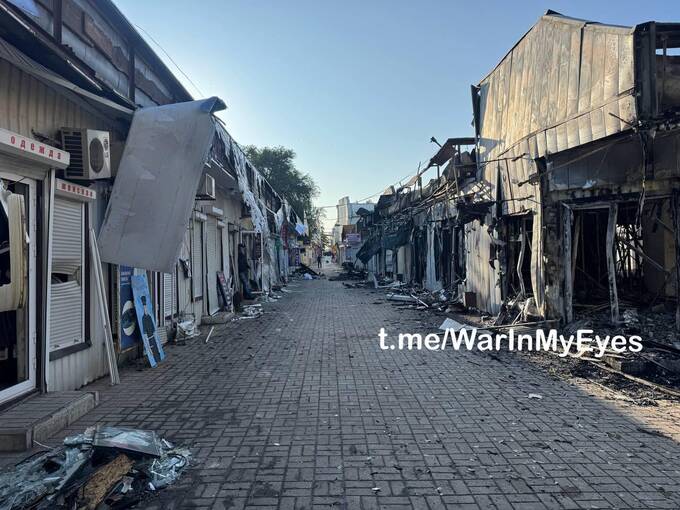 Наслідки вчорашнього удару по ринку в центрі Донецька (в районі ЦУМу).