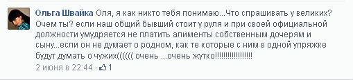 Удивительно, что этот sos был опубликован в Facebook. И отозвалась на него в первую очередь третья супруга министра – Ольга Швайка: