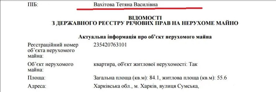 Не менш заможна і мати прокурора — вона є власницею квартири площею 84,1 кв. м на центральній вулиці Сумській у Харкові (орієнтовна вартість — 2 млн грн), а також будинку в місті Люботин, придбаного ще у 2011 році.