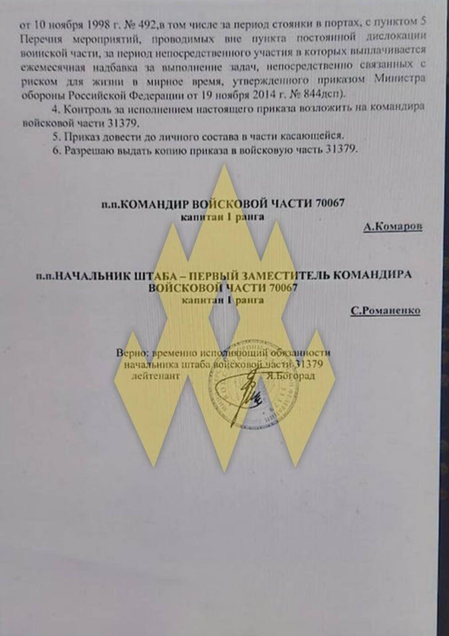 "Наші фахівці отримали засекречені документи Чорноморського флоту РФ, в яких наведено бойове чергування катерів супроводу, що охороняють тіньовий флот з нафтою. У документах – графіки виходів, зміни екіпажів, борти, маршрути та ПІБ командирів", – йдеться у повідомленні.