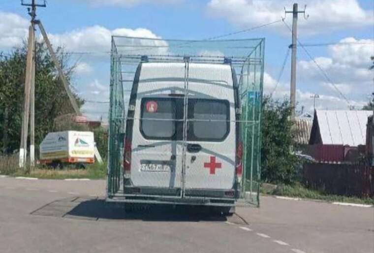 У Росії почали захищати автомобілі швидкої допомоги сітками проти дронів.