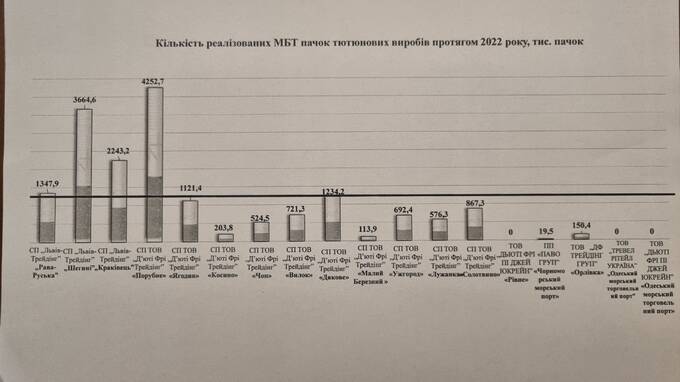 Так, лише за 2022 рік (дані ТСК від митниці) в магазинах безмитної торгівлі, по чеках (фіктивно), було продано понад 18 млн пачок сигарет.