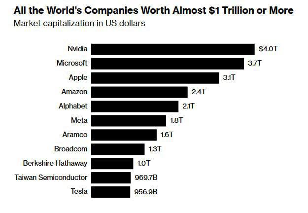 Для порівняння: нинішня капіталізація Nvidia перевищує сукупну вартість усіх компаній, що котируються на британських фондових біржах.