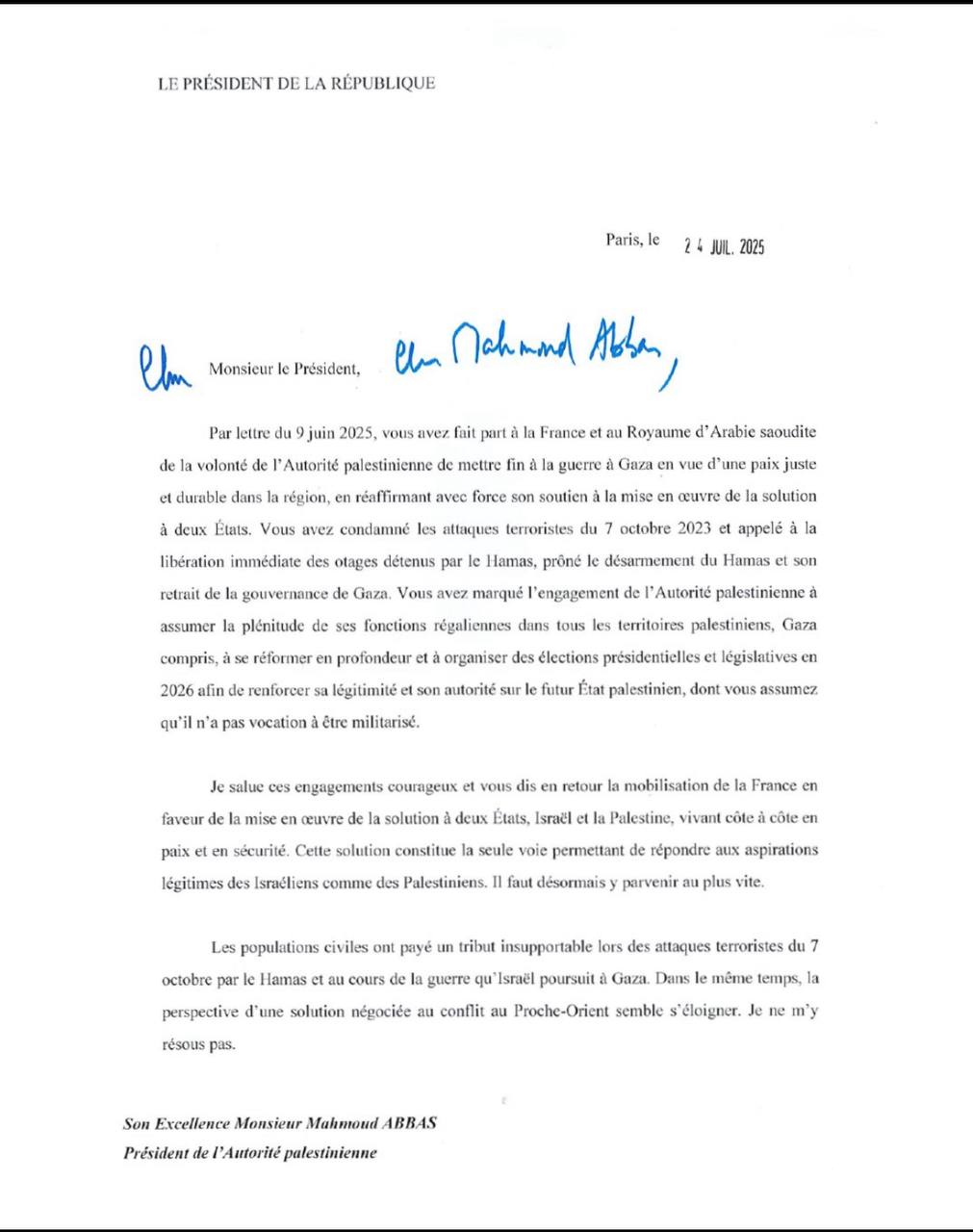Макрон підкреслив необхідність негайного припинення війни в Газі, звільнення всіх заручників і надання масштабної гуманітарної допомоги мирним жителям регіону. «Мир можливий, і ми повинні зробити все, щоб його досягти», — зазначив президент.