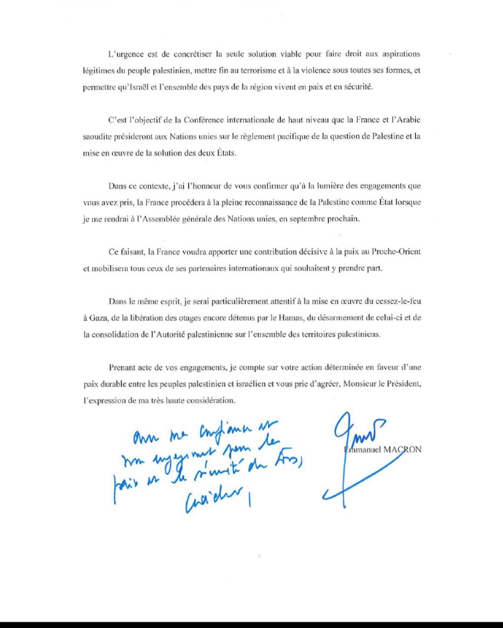 Президент Франції Емманюель Макрон повідомив у соцмережах, що країна офіційно визнає державу Палестина.