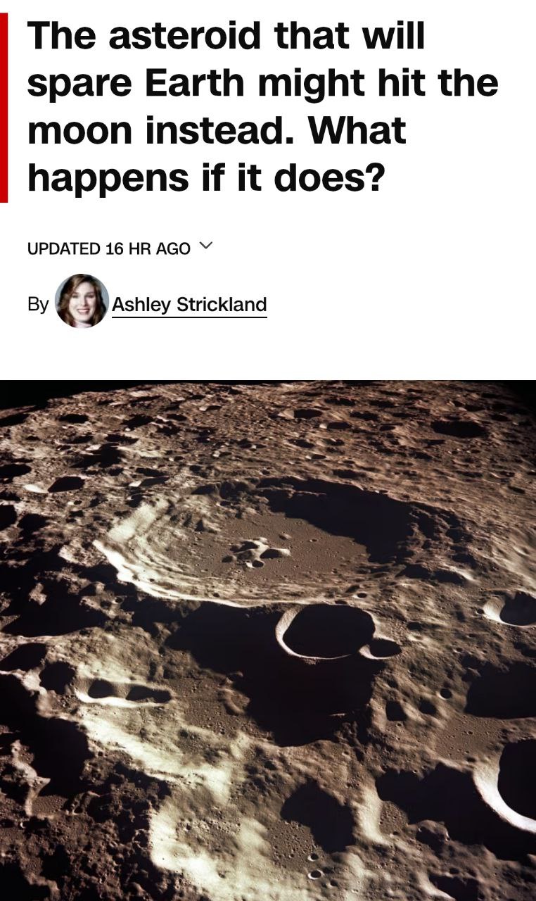 Хоча можливість удару по Землі виключена, за розрахунками NASA, ймовірність удару по Місяцю становить близько 4,3%. Це рекордно високий показник.
