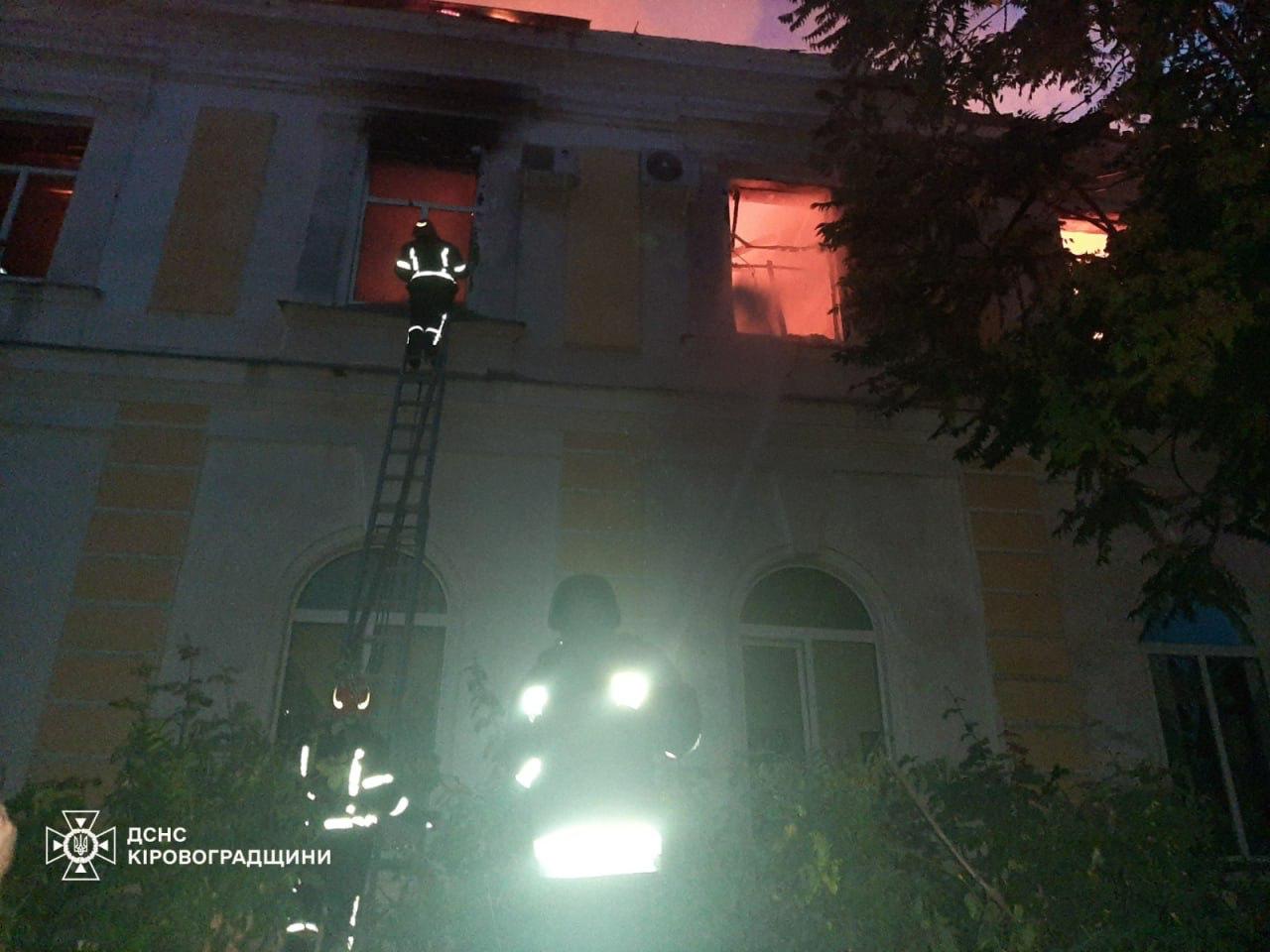 За даними ОВА, пошкоджено будівлю обласної філармонії, в університеті імені Винниченка вибито вікна, також постраждали кілька офісних приміщень у центрі міста.