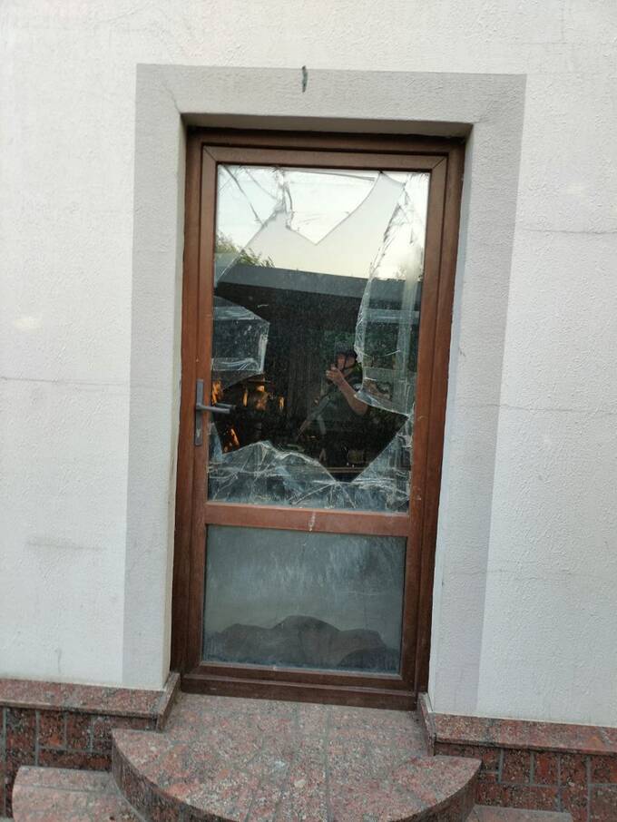 У результаті обстрілу частково зруйнована триповерхова будівля, яка не використовувалася. До того ж, поруч пошкоджені медичні заклади - пологовий будинок та відділення міської лікарні.