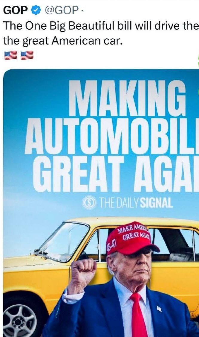 Офіційна сторінка Республіканської партії США у соціальній мережі X опублікувала пост, присвячений ініціативі з відродження автомобільної промисловості Америки. Замість очікуваних зображень із такими брендами, як Ford чи Chevrolet, публікацію супроводжувала фотографія Дональда Трампа біля радянського автомобіля ВАЗ-2105, відомого як «Жигулі».