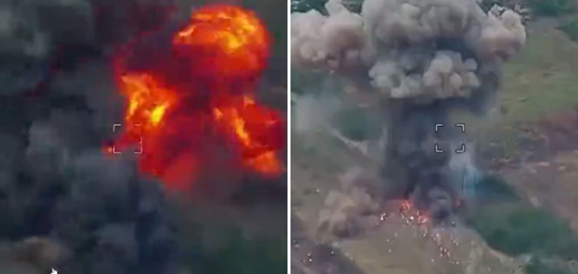 На відео видно влучне ураження російського озброєння з використанням безпілотника: після влучання "град" буквально розірвало, від яскравого вибуху ця ворожа РСЗВ запалала, охоплена вогнем і чорним димом.