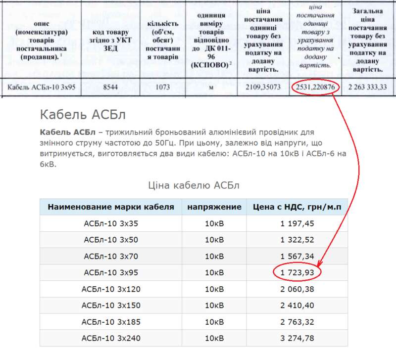 Раніше, у травні АТ «Черкасиобленерго» замовляло такий кабель із коротшою післяоплатою протягом 30 робочих днів по 1 872 грн/м, що на 26% дешевше, а КП «Запоріжміськсвітло» – з іще коротшою післяоплатою протягом 7 робочих днів по 1 711 грн/м, що на 32% дешевше.