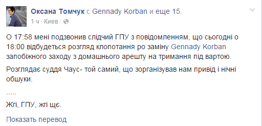Как известно, в конце декабря заканчивается срок содержания под домашним арестом Геннадия Корбана. Наряду с этим в суде Корбану пытались вручить новое подозрение. Печерский районный суд Киева в среду, 23 декабря, провел судебное заседание, в ходе которого должно было продолжиться рассмотрение ходатайства защиты лидера УКРОПа об изменении ему меры пресечения в виде круглосуточного домашнего ареста с обязательством носить электронный браслет на домашний арест в ночное время без обязательства носить электронное средство контроля.