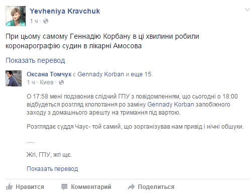При этом самому Корбану в эти минуты делали коронарографию сосудов в больнице Амосова, а его защитников предупредили о слушании за несколько минут до и после начала заседания.