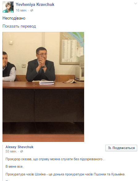 Об этом в Facebook сообщили адвокаты Оксана Томчук, Алексей Шевчук, пресс-секретарь партии Евгения Кравчук и народный депутат Андрей Денисенко.
