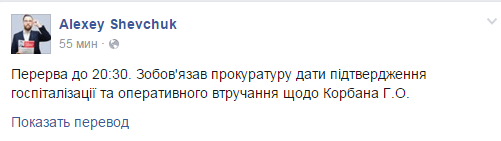 В Генпрокуратуре заявили, что подозревают Корбана в фальсификации диагноза и по этой причине политика принудительно доставили в Киев.
