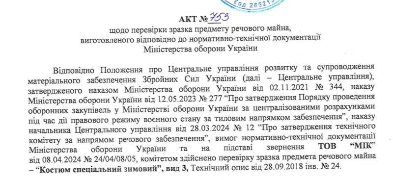 А в закупівлі костюма спеціального зимового, замість посилання на специфікацію була зазначена назва малюнку ММ-25. Це дозволило ТОВ «МІК» виграти торги, не спираючись на нові вимоги до тканини.