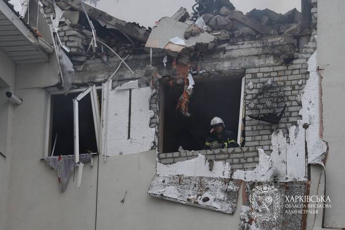 У Харківській ОВА показали кадри наслідків дронової атаки РФ по Індустріальному району Харкова.