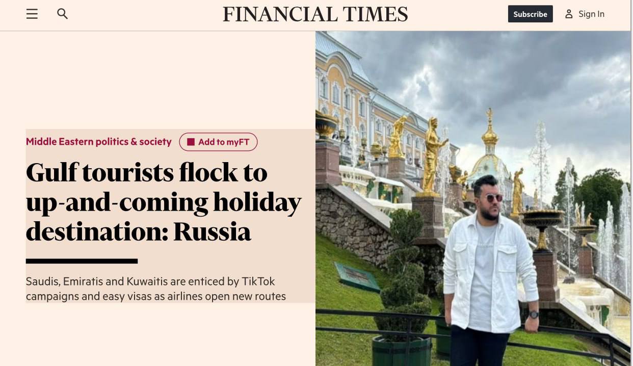 Газета Financial Times повідомляє, що Росія стала привабливим туристичним напрямком для мандрівників із Саудівської Аравії, ОАЕ та Кувейту.