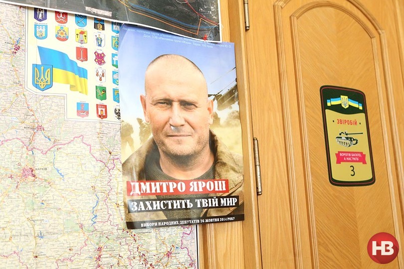 Через дев’ять місяців, в березні 2015-го, НВ стане свідком того, як "дніпропетровські" будуть "здавати" Дніпро. Ми потрапимо в кабінет Корбана, коли звідти будуть виносити його речі. Там ще багато чого буде нагадувати про роботу "приватівців": портрет Яроша, мішень із зображенням Путіна, карти залізничних шляхів, блокпостів, схеми зв’язків сепаратистських угруповань, фотографії укріплень.