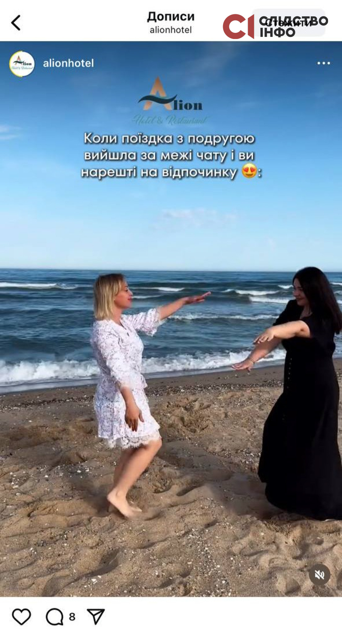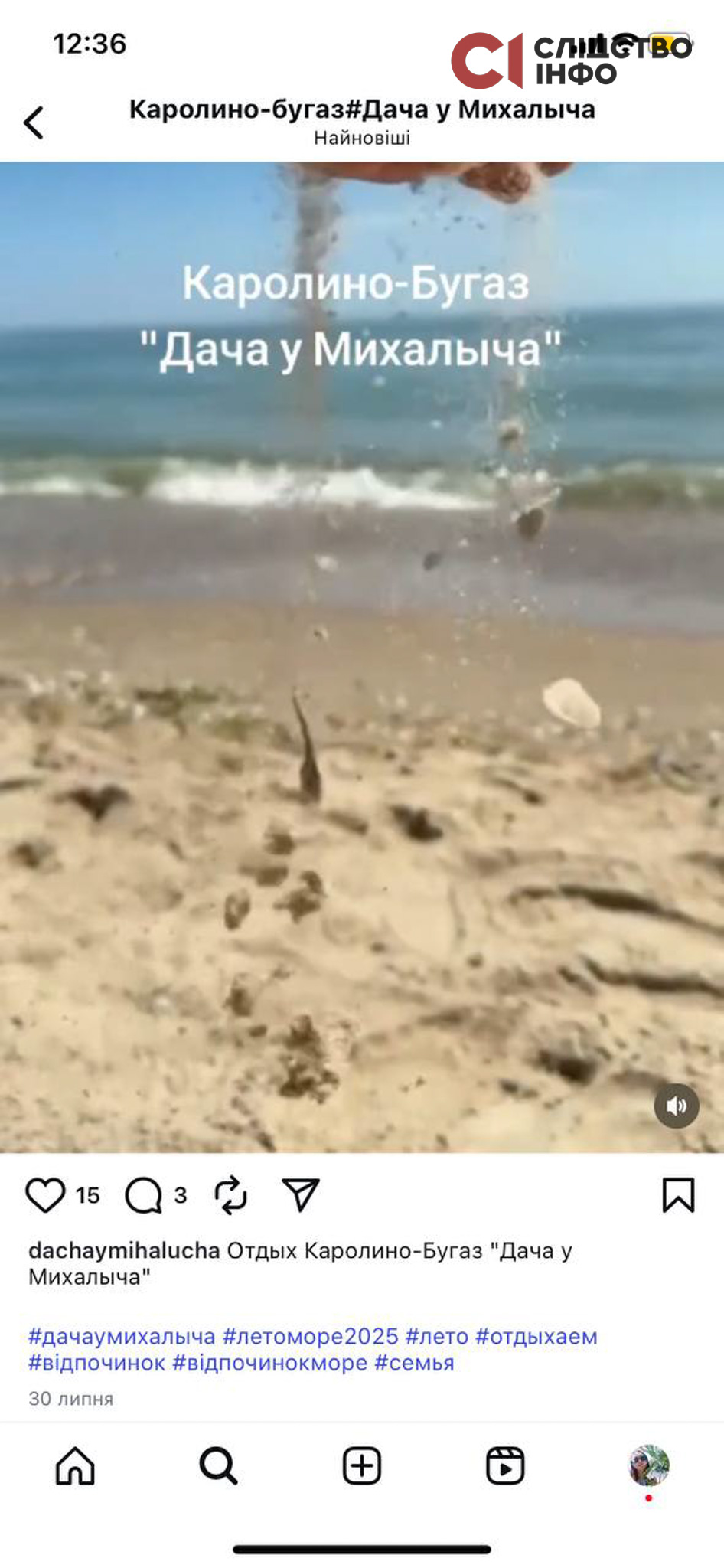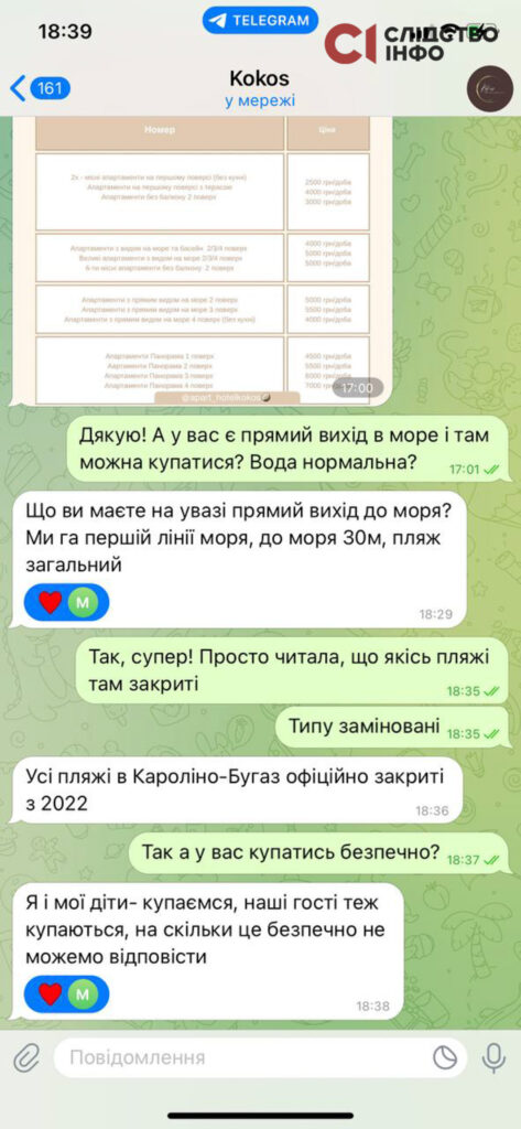 В інстаграмі журналістка звернула увагу на сторінку котеджів «Марія» («Мілано») в Кароліно-Бугаз. Там туристів квапили скоріше забронювати номери, щоб відпочити прямо на морі.