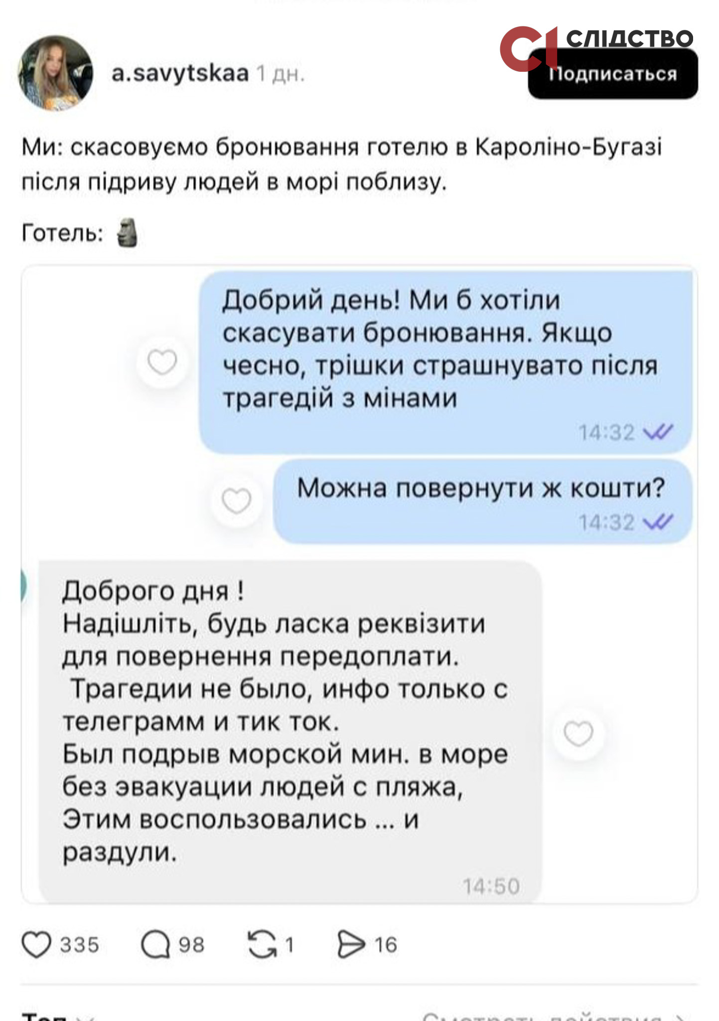 Журналісти написали за вказаним номером в інстаграмі: