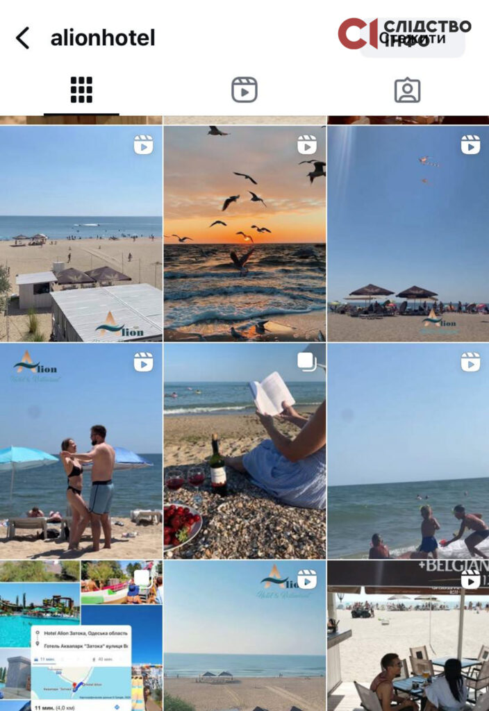 Інший готель біля станції Кароліно-Бугаз — «Alion Hotel» представляє вже багато років Аліна Бєлєнцова. В промо відео також наголошують про близькість до моря: «Пляж — лише кілька кроків від дверей».