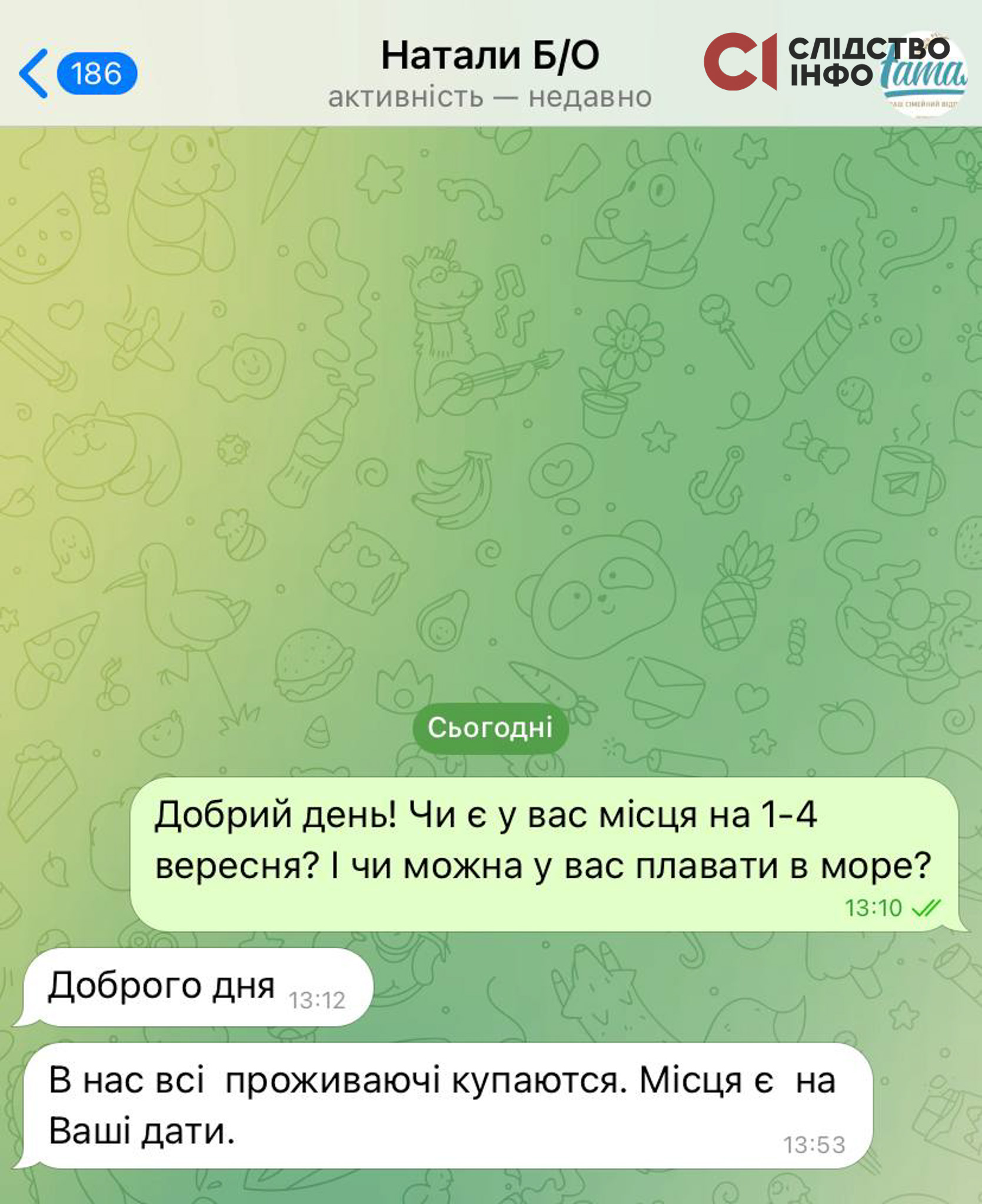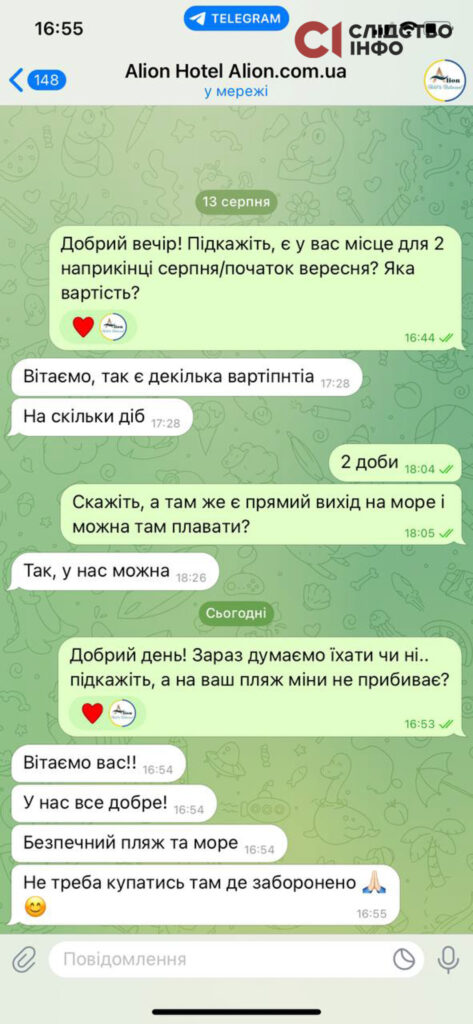 Журналістка: Добрий день! Зараз думаємо, їхати чи ні… Підкажіть, а на ваш пляж міни не прибиває?