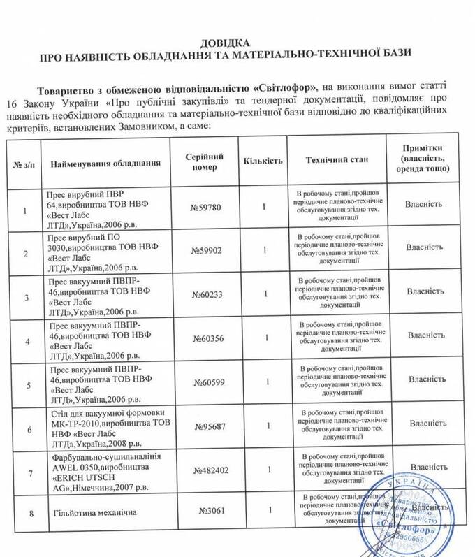 Ба більше, у «Світлофора» та «Л.П. Продакшн» навіть є однакове обладнання у використанні: вакуумні та вирубні преси, стіл для формовки тощо.