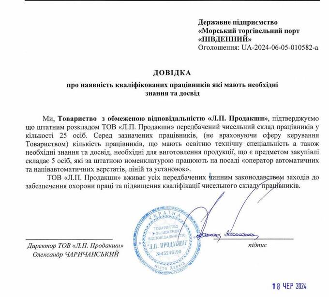 Подивимося на документи про виробництво, які «Л.П. Продакшн» подавало для участі в тендері. Компанія вказала, що орендує у Харкові на вул. Шевченка, 111 виробничий цех площею в 565,5 кв. м.