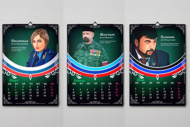 Среди 12 «героев», которые попали на страницы календаря, оказались как российские политики, так и главари незаконных вооруженных формирований на востоке Украины.