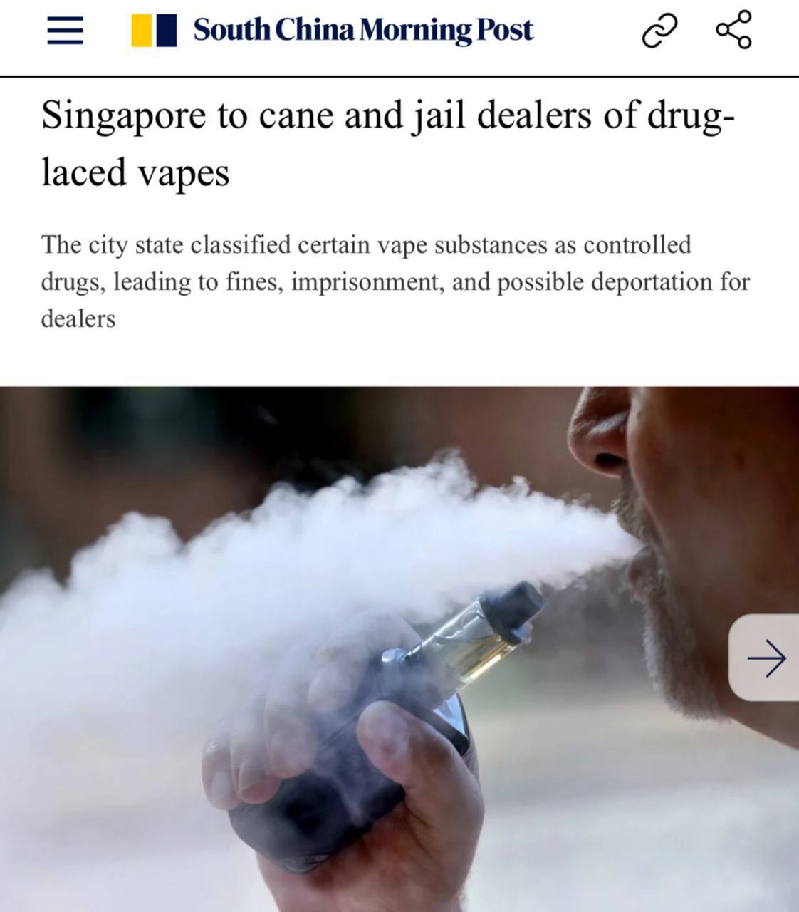 У Сінгапурі запровадять тілесні покарання за вейпи — закон був ухвалений через зростаючу популярність подів серед молоді.