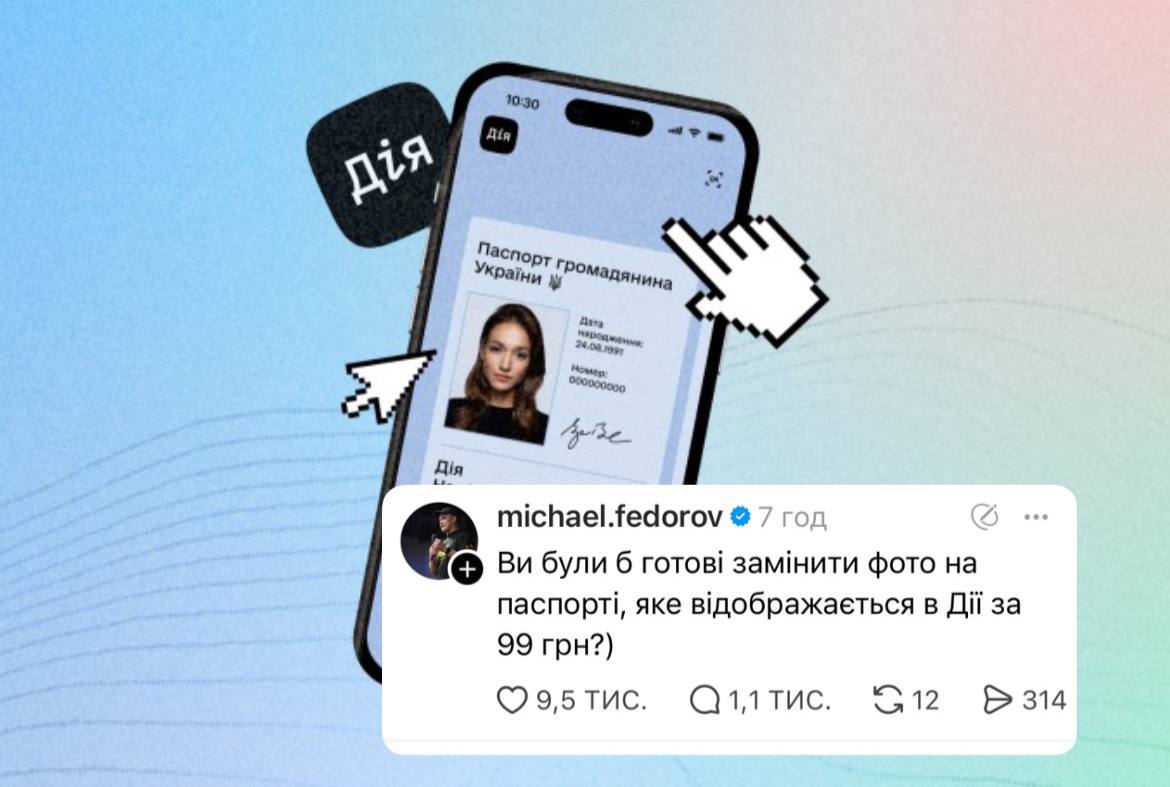 «Чи готові ви замінити фото на паспорті, яке відображається в Дії, за 99 грн?)», – написав Федоров.
