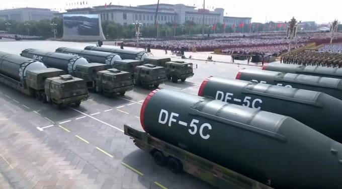 На площі Тяньаньмень Китай продемонстрував ядерну тріаду: авіаційні ракети «Цзинлэй-1», ракети «Цзюйлан-3» для підводних човнів, а також кілька ракет наземного базування. Головною новинкою та «зіркою» параду стала міжконтинентальна балістична ракета «Дунфен-5C», що має дальність польоту 20 000 кілометрів та здатна досягти будь-якої точки світу.