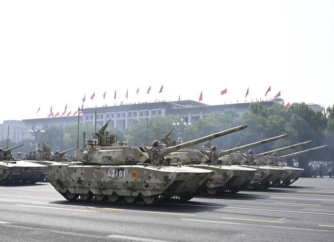 На параді також були представлені корабельні системи лазерного ППО LY-1 і наземні їх варіанти на позашляховиках, а також танк Type 100/ZTZ-201, який називають «головною бронетанковою сенсацією 2025 року». Китайські інженери оснастили Type 100 спеціальним захисним комплексом для знищення ракет і дронів, баштою, як у Т-14 «Армата», безліччю камер високої роздільної здатності та потужним гібридним двигуном.