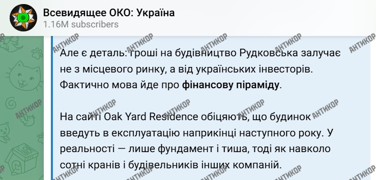 В українських Telegram-каналах з’являються ще більш жорсткі висловлювання: «Це не інвестиція в майбутнє житло, це ширма для виведення грошей».