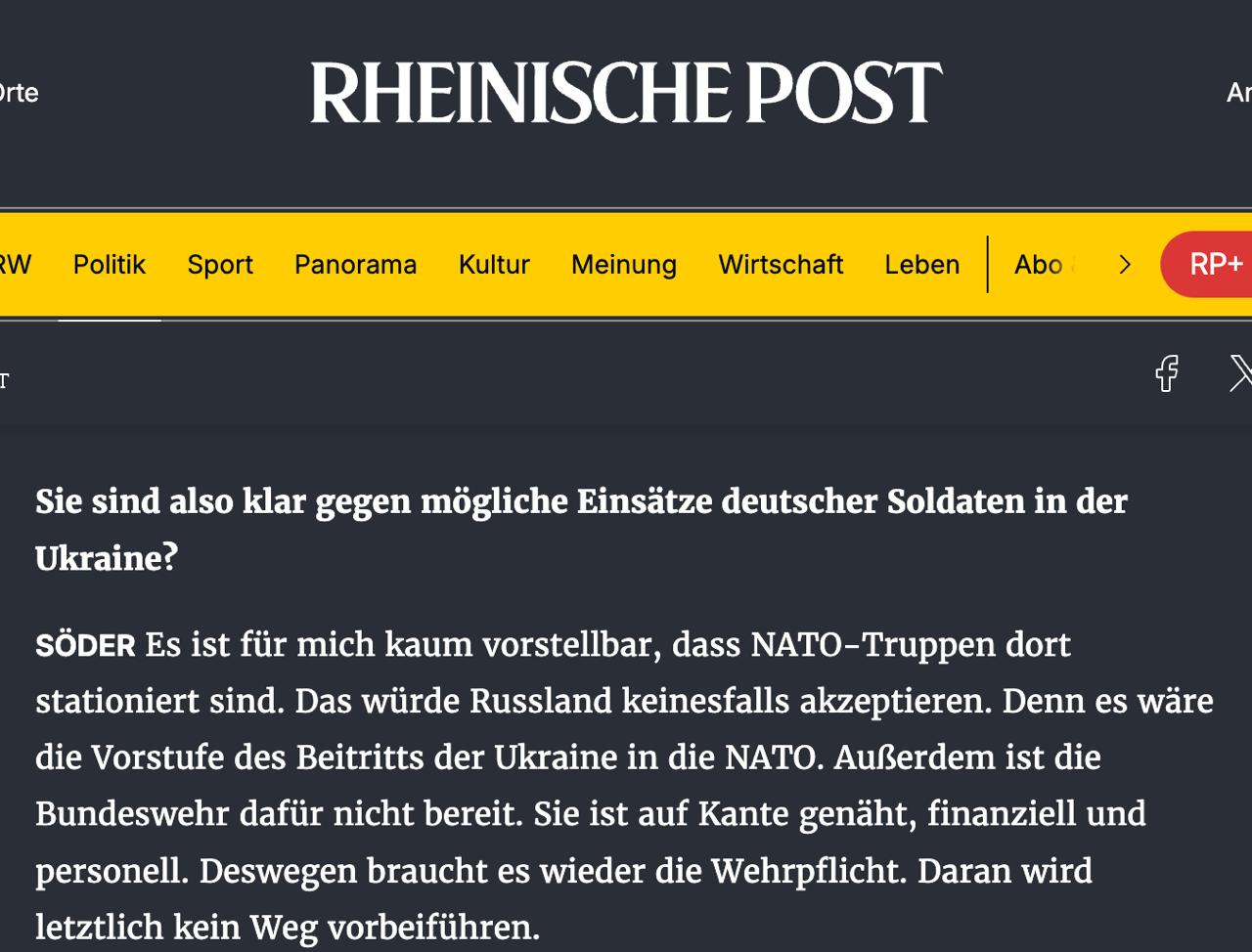 «На даний момент досягнення миру не передбачається. Тому має сенс обговорити можливість відправки придатних до військової служби українців назад на батьківщину для забезпечення безпеки у своїй країні», – зазначив він в інтерв’ю газеті Rheinische Post.