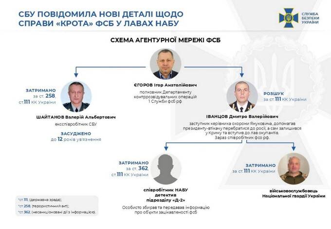 СБУ вилучила у "крота" телефон і техніку, йому загрожує до 15 років тюремного ув’язнення. У відомстві підкреслили, що справа стосується конкретної особи і не впливає на роботу НАБУ в цілому.